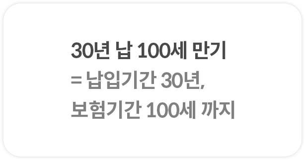 30년 납 100세 만기 = 납입기간 30년, 보험기간 100세 까지